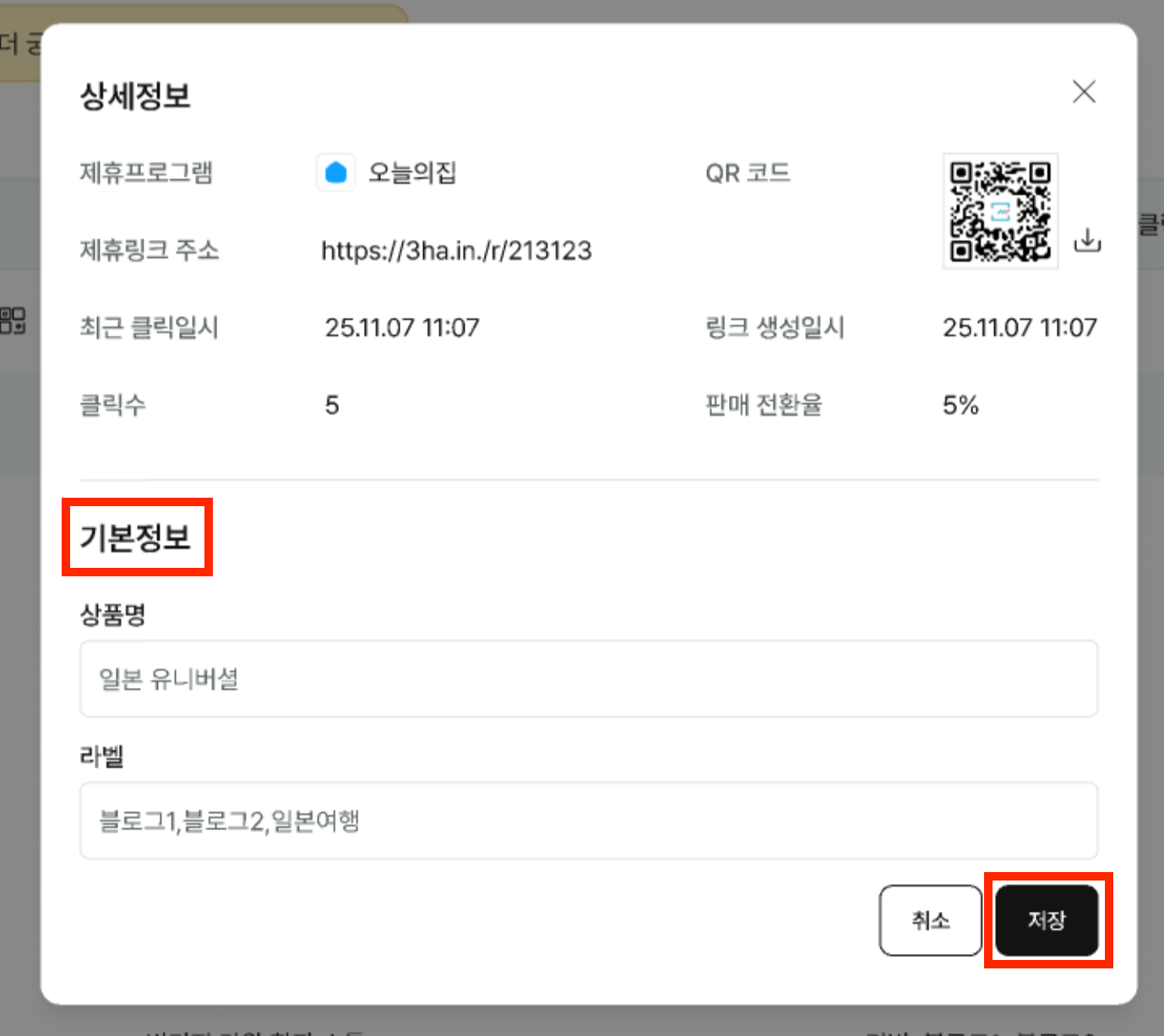 라벨은 필수값은 아니지만, 링크가 많아질수록 클릭·판매 성과를 빠르게 파악하는 데 큰 도움이 됩니다.